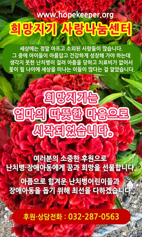 희망지기 사랑나눔센터는 소중한 후원으로 난치병·장애아동에게 꿈과 희망을 선물합니다.