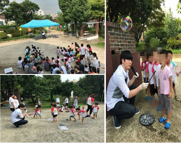 17년 8월 11일 금요일 <해성보육원>에서 보육원 어린이들을 위한 일일캠프 희망레크레이션이 열렸습니다. 아이들과 마블마블 비눗방울 놀이도 하고 신기한 마술쇼를 관람하였는데요. 바쁘신 와중에도 시간을 내주신 김관웅 강사님께 감사드립니다.