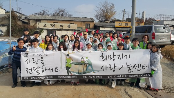 16년 11월 19일 토요일 경기도 부천시에 소재하고 있는 계수동 판자촌에서 사랑의 연탄나눔행사를 진행하였습니다. 희망지기는 연탄 1,000 여 장을 저소득층 가구에 지원하고 따뜻한 겨울을 보낼 수 있도록 하였습니다. 자원봉사자 여러 분들과 함께 한 뿌듯하고 행복한 하루였습니다. 모든 사람들이 따뜻하고 행복할 수 있도록 열심히 후원하는 희망지기가 되겠습니다.